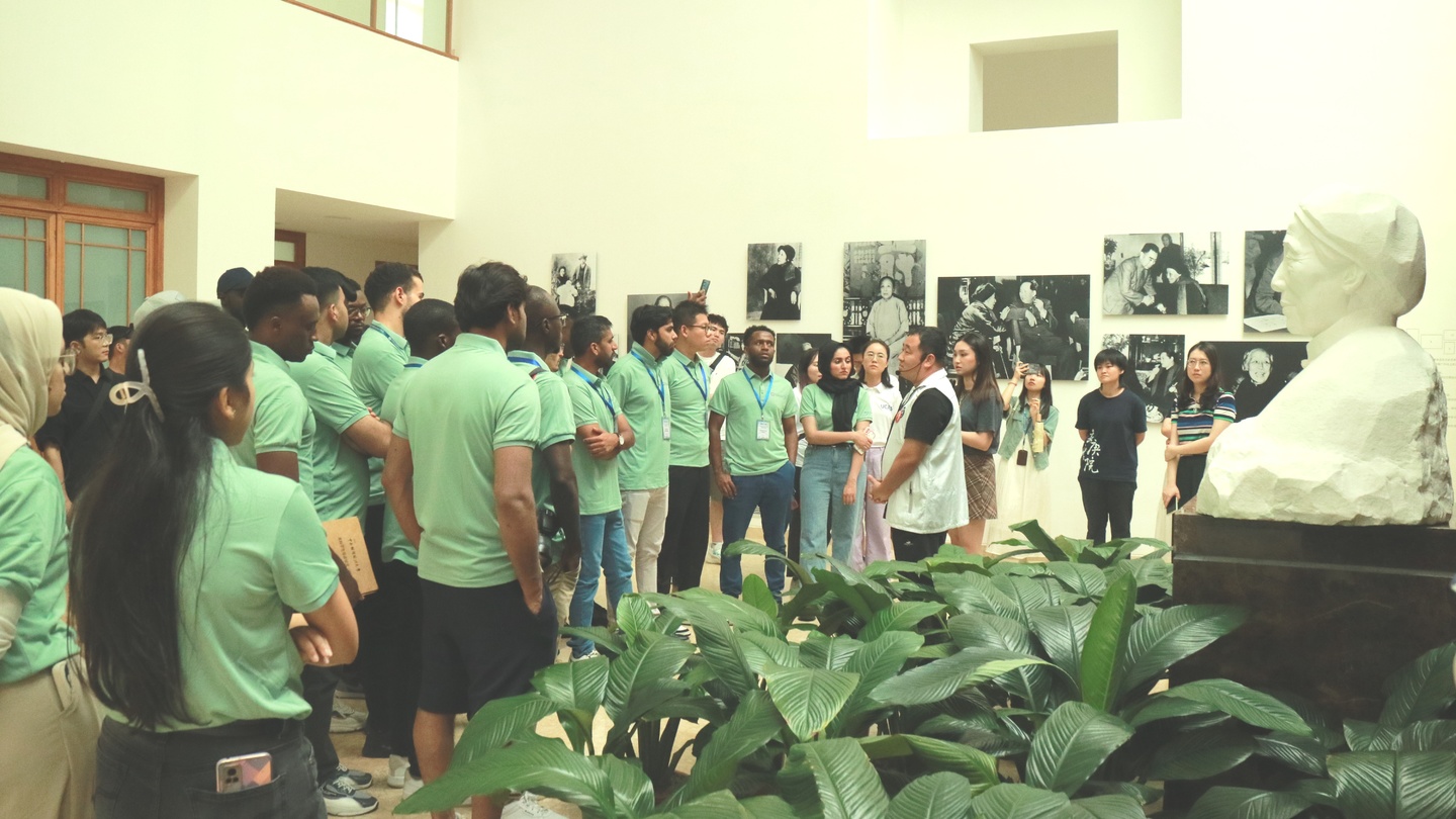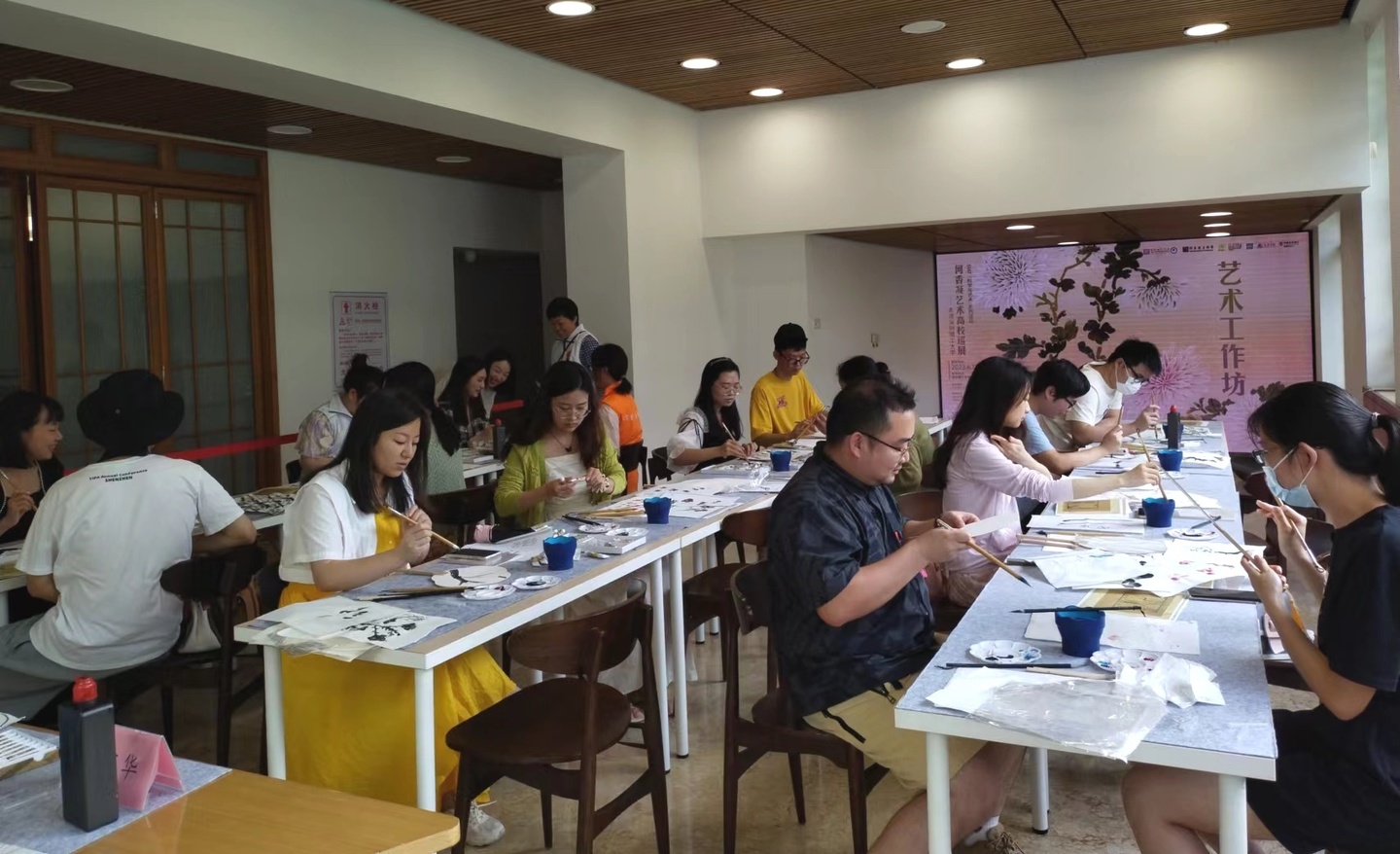 7月29日下午,30余名“中国科学院大学2023国际青年学者暑期学校”学员来馆参观。在画作前,志愿者刘老师细述作品的画里画外,并和学员进行交流互动,向大家展示了何香凝先生“丹青为伴写烟霞”的革命人生,以及中国传统书画丰富的艺术形式和深厚的精神内蕴。
