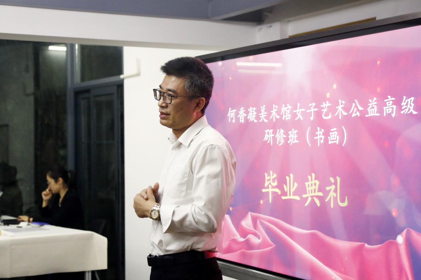在开班仪式上,何香凝美术馆馆长蔡显良发表致辞。他指出,研修班的意义在于弘扬何香凝先生的崇高精神和艺术追求,弘扬中国艺术真善美的精神实质,弘扬集体主义精神。希望学员们珍惜学习机会,团结互助,充分汲取书画艺术知识,创作出优秀的艺术作品。
