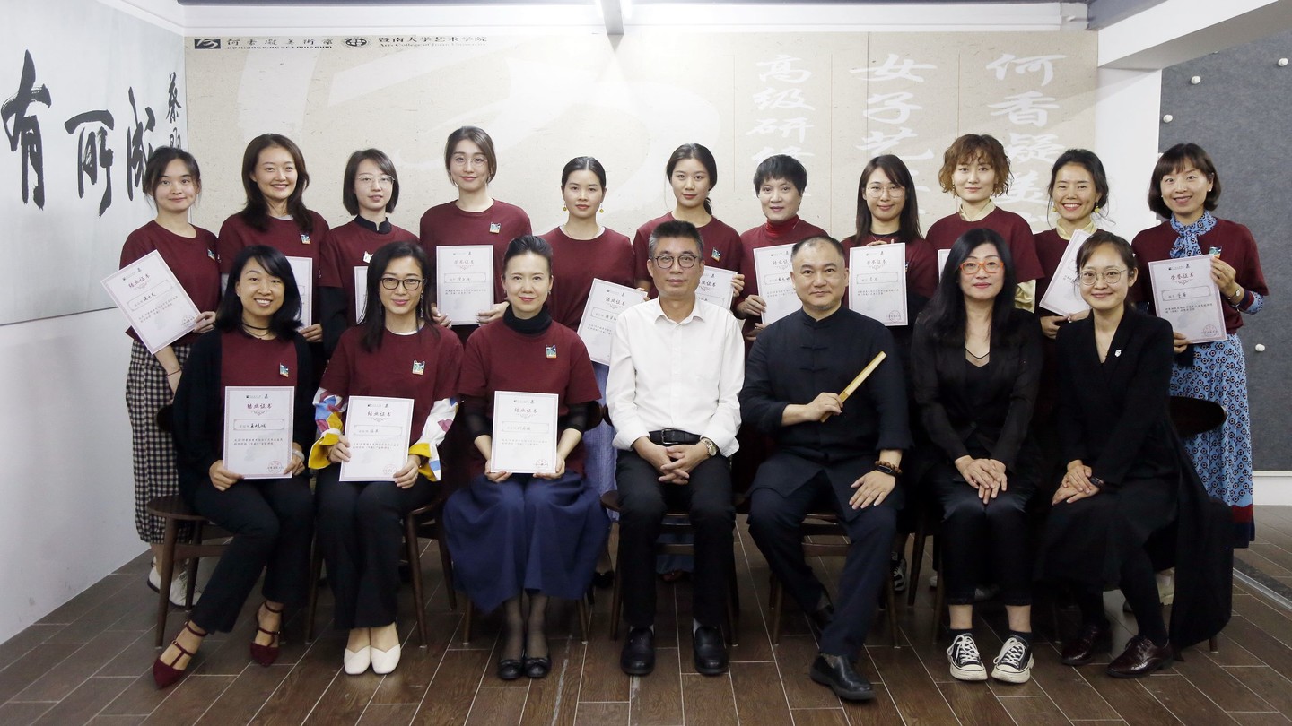 何香凝美术馆女子艺术公益高级研修班(书画)连续5周共10天的课程,共计72课时,于11月15日教学工作圆满结束。学员们充分汲取书画艺术知识,为今后的艺术创作开拓了更为广阔的空间。在毕业典礼上,学员们回顾了一个多月来的学习生活,感慨良多。何香凝美术馆馆长蔡显良、办公室主任樊宁为学员们颁发了结业证书及优秀学员证书,并鼓励大家继续努力,弘扬中国传统文化及女性艺术。课程虽已经结束,但学习与创作仍在继续。本期研修班将于2021年3月8日举办结业画展。