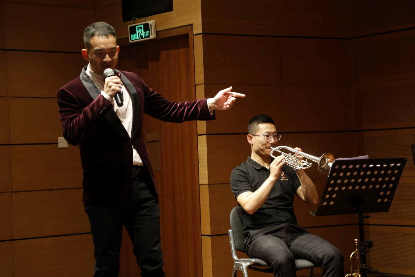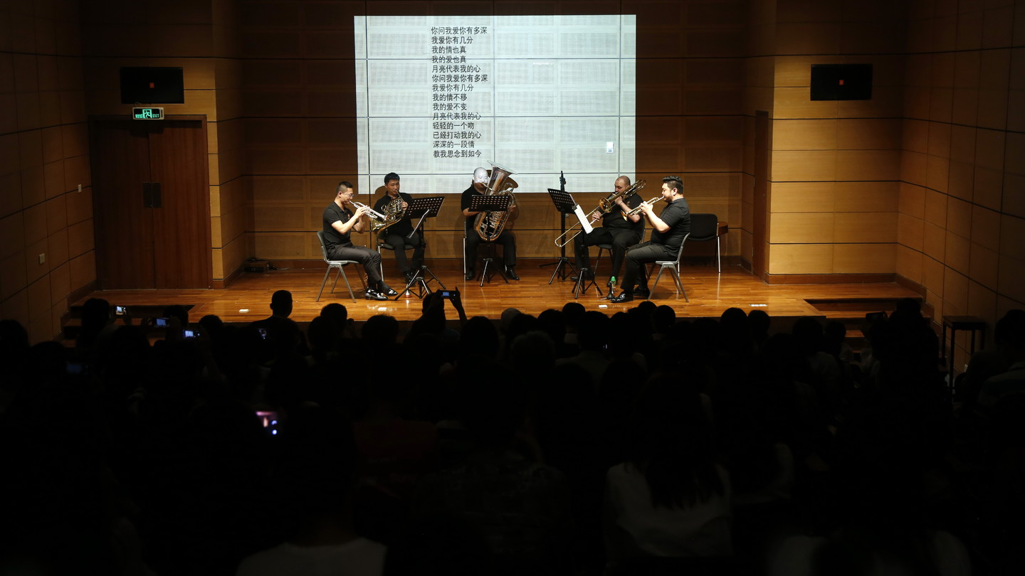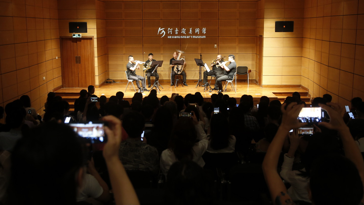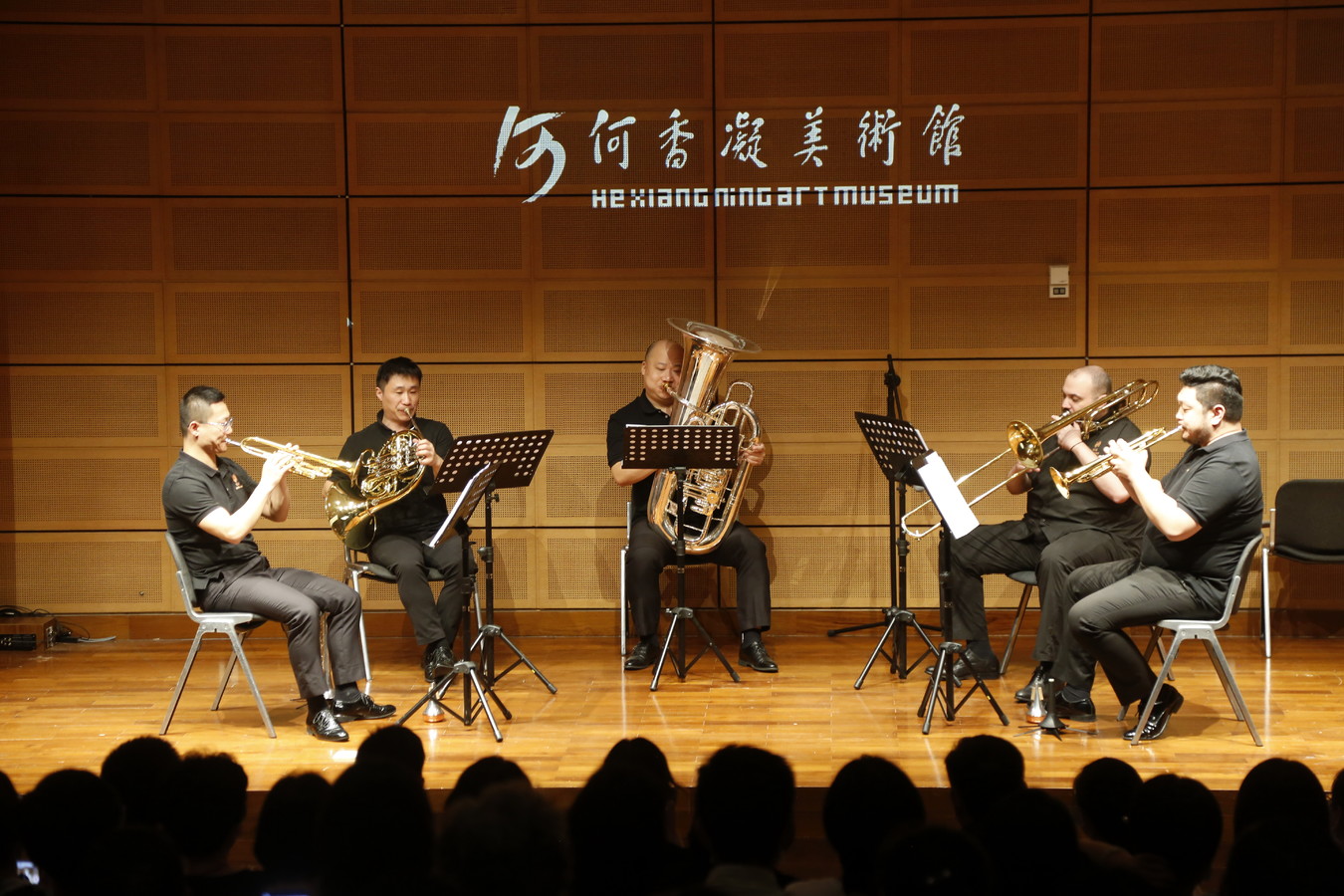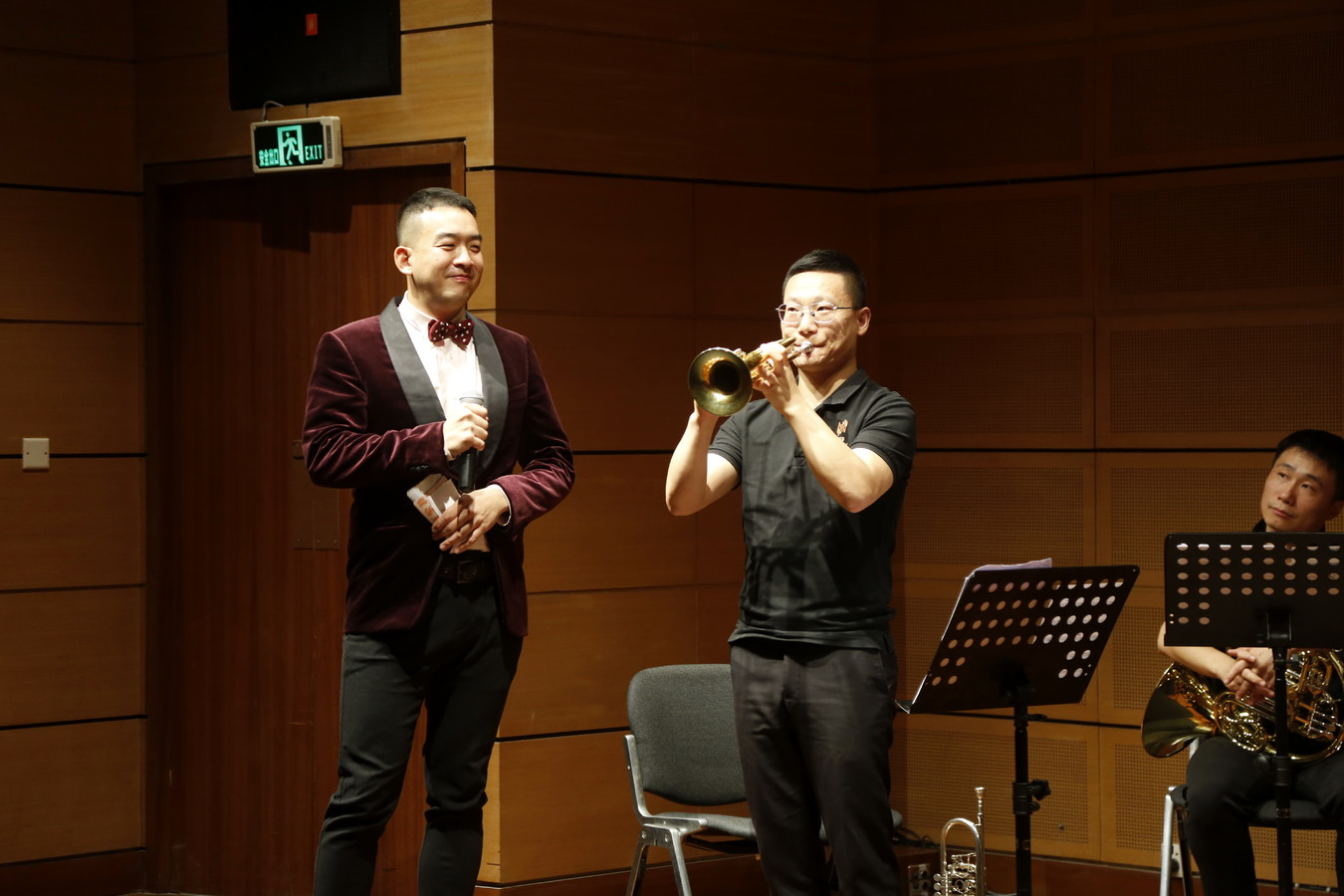 “美术与音乐的交响”系列公益活动,第一期管弦乐演奏会,由代东宇、李杨(小号)、徐毅奇(圆号)、刘鹤(大号)、Francesco Nigris(长号)五位演奏家同台演出,带来了《我爱你中国》《巡逻兵》《权力的游戏》《龙猫》等10首深受广大观众喜爱且耳熟能详的曲目。