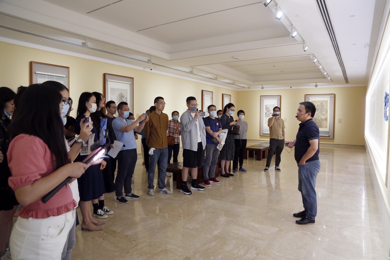 下午开幕式之前,由本次展览策展人之一、南京博物院研究馆员万新华,以网络直播的形式,向广大观众和媒体朋友奉献了一场精彩的导览,向未能亲临现场的朋友们提供了更为便捷的艺术讲解,深入浅出讲述了三百年画史。