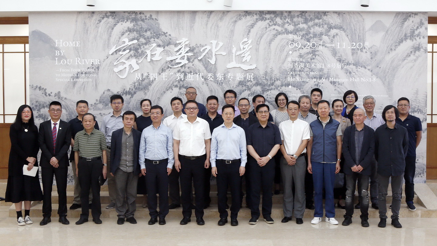 9月20日下午,由南京博物院和何香凝美术馆联合主办的学术展览“家在娄水边——从‘四王’到近代娄东专题展”,在何香凝美术馆隆重开幕。出席本次开幕式的嘉宾有:深圳市委宣传部 常务副部长陈金海、深圳市委统战部副部长 市侨办副主任刘昕、深圳市文联巡视员 广东省美术家协会副主席梁宇、深圳市建筑工务署党组书记姚亮、深圳市委宣传部文艺处处长宁平平、深圳市委统战部侨务处处长江红、深圳市文化广电旅游体育局艺术处处长林清波、南京博物院副院长盛之翰、南京博物院研究馆员万新华、湖北美术馆馆长冀少峰、书画家萧平、中国汉画学会会长陈履生、华东师范大学教授丁小明、北京画院美术馆展览部主任薛良、广东美术馆馆长王绍强、广州艺术博物院院长王平、廖仲恺何香凝纪念馆副馆长刘斌、深圳市美术家协会名誉主席 深圳美术馆原馆长宋玉明、深圳博物馆副馆长郭学雷、关山月美术馆艺术总监文祯非、深圳美术馆馆长张燕方、深圳美术馆副馆长王子蚺、当代艺术与城市规划馆馆长颜为昕、深圳大学美术馆馆长陈向兵、宋文治纪念馆馆长宋珮、何香凝美术馆原馆长任克雷、何香凝美术馆原副馆长栾倩、何香凝美术馆馆长蔡显良。