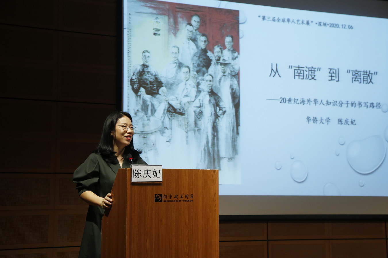上午,在何香凝美术馆报告厅举办了题为“海外华人的亚太叙述”学术论坛,何香凝美术馆馆长蔡显良致欢迎辞。会上,暨南大学特别教授、厦门大学教授李明欢,华侨大学教授陈庆妃,广州美术学院中国画学院岭南画派研究中心主任王艾,深圳画院创作部副主任古秀玲,上海中国画院学术典藏部主任王欣,依次发表了专题演讲,深入探讨了海外华人的艺术风格、水墨实践、海外华人文学的多元化、地缘文化等问题。演讲结束后,嘉宾、策展人与现场观众进行了问答互动。