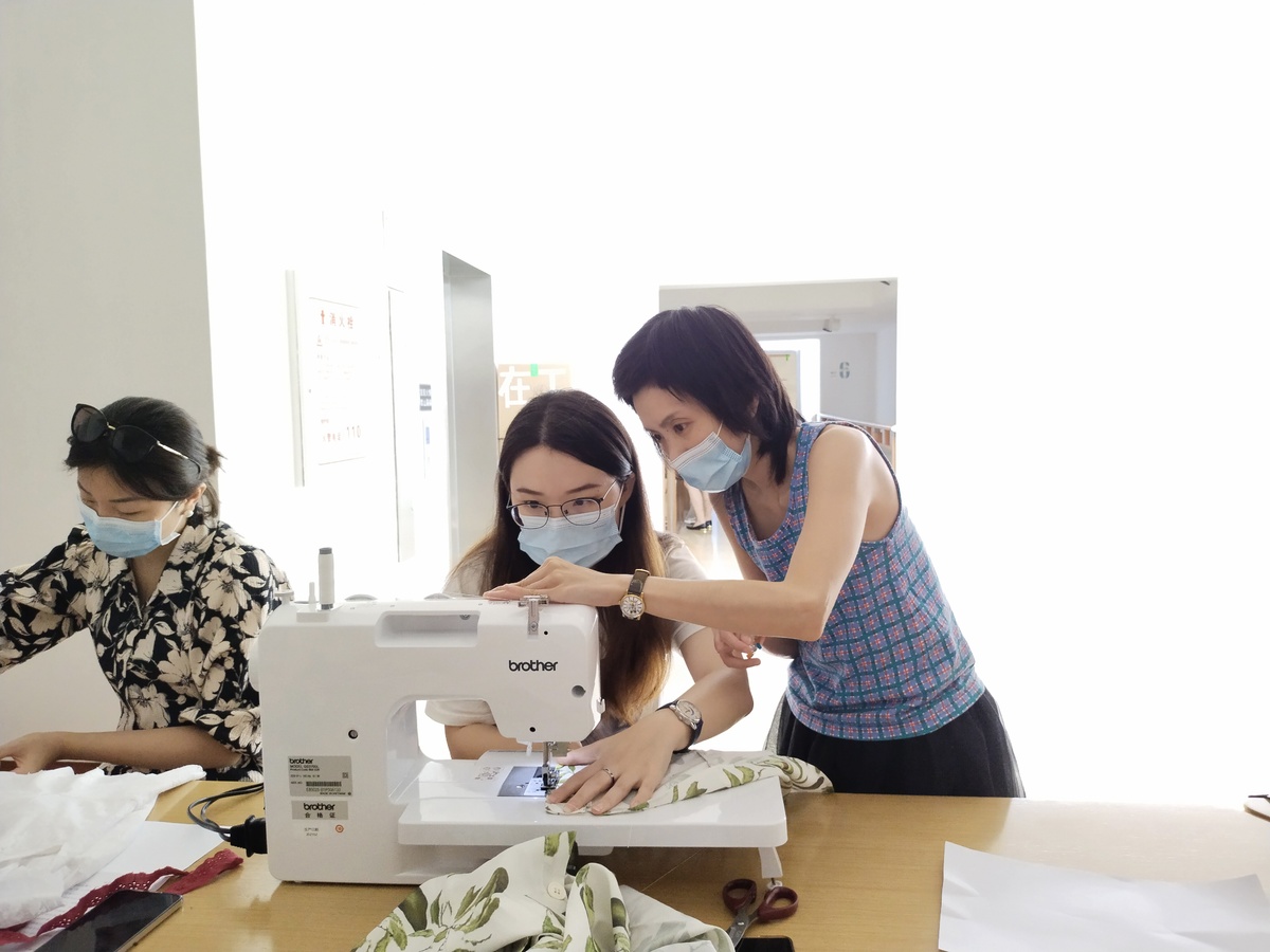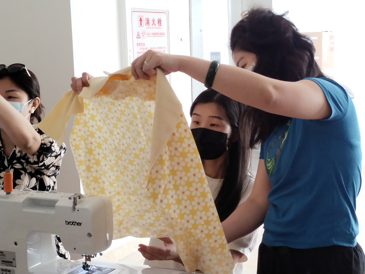 “我很喜欢这个创作的过程,把旧衣物带来,进行裁剪,加入其他布料连接、装饰。不仅考虑实用,还要兼顾美观。女子天团的老师,除了给予技术上的指导,还提供了很多具有创意的设计思路。”经过两个多小时的缝制创作,一件件“崭新”的衣物成功“出炉”,大家对自己的劳动成果感到十分满意。